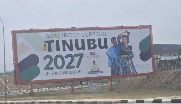 The controversy was reignited recently when residents of Abuja woke up to gigantic billboards showing President Bola Tinubu holding hands with his wife, Senator Oluremi Tinubu, alongside the inscription: “Grassroots Support for Tinubu 2027.”