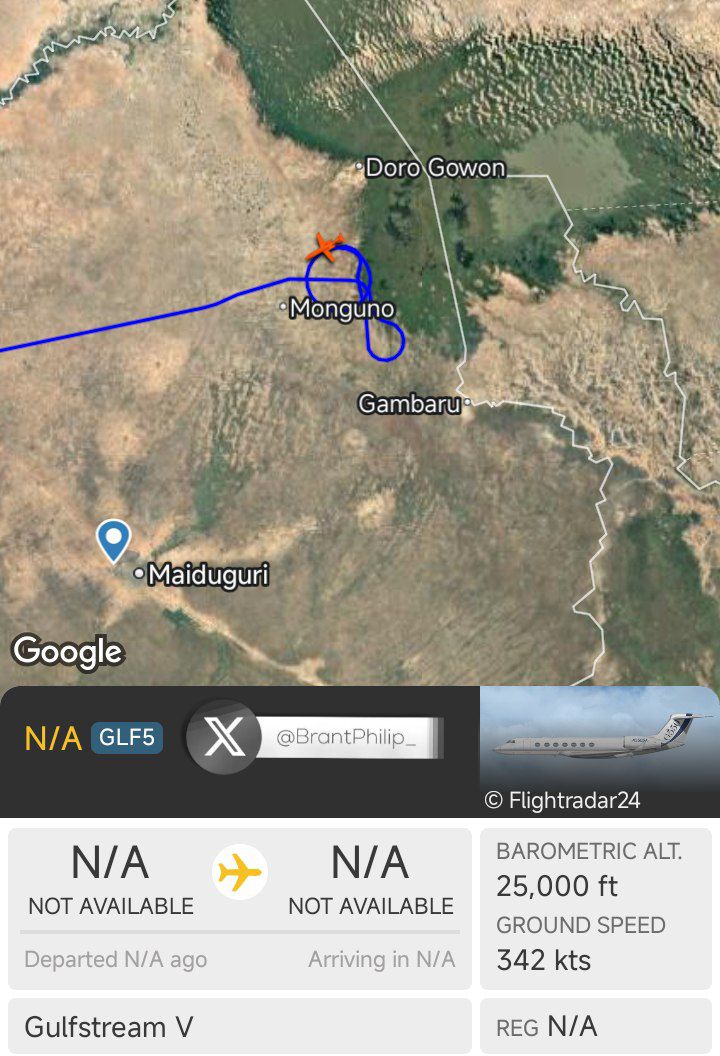 According to Brant Philip, a security expert for West and East Africa, the US Air Force ISR mission is targeting ISWAP zones of influence in Borno State, northeast Nigeria, on the fringes of Lake Chad.